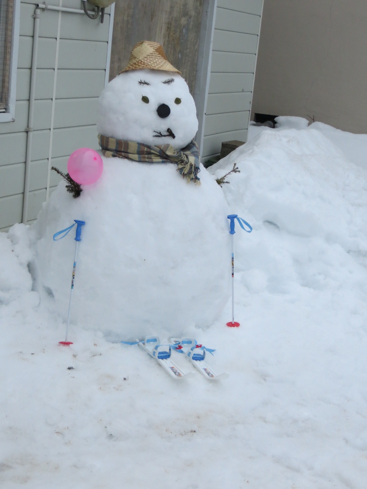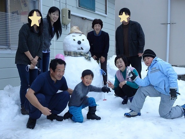 着くなり、雪を積んでソリ遊び。その横には雪だるまを作りました。雪を見ると「雪だるまを作ろう」って条件反射なのでしょうか(笑)