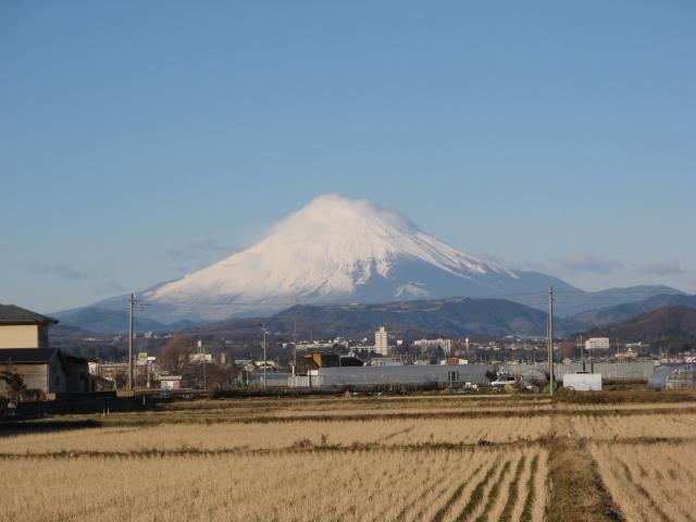 富士の周りにわずかな雲があるだけで、真っ青な空のすがすがしい元旦の朝、雄大な富士はさらに美しい姿をみせてくれました。