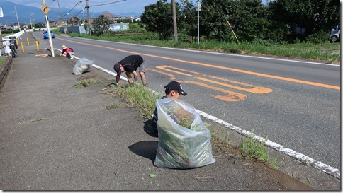 それから1週間ほどたった10日には、その後出てきた草を取るだけの簡単な作業となりました。「それでは申し訳ない」と、皆で気になっていた旧道沿いの草取りに移行。