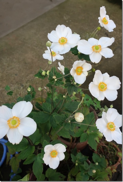 朝日に照らされ、きれいな「ざる菊」