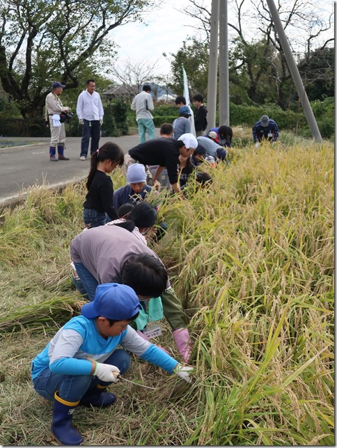 刈り終えた田んぼでカエルやトカゲを捕まえる子もいて、今年も子どもたちはいい経験をして「米づくり体験隊」が締めくくられました。参加したみなさん、刈りたての超人気の「はるみ」を、きっとおいしく食べていることでしょう。