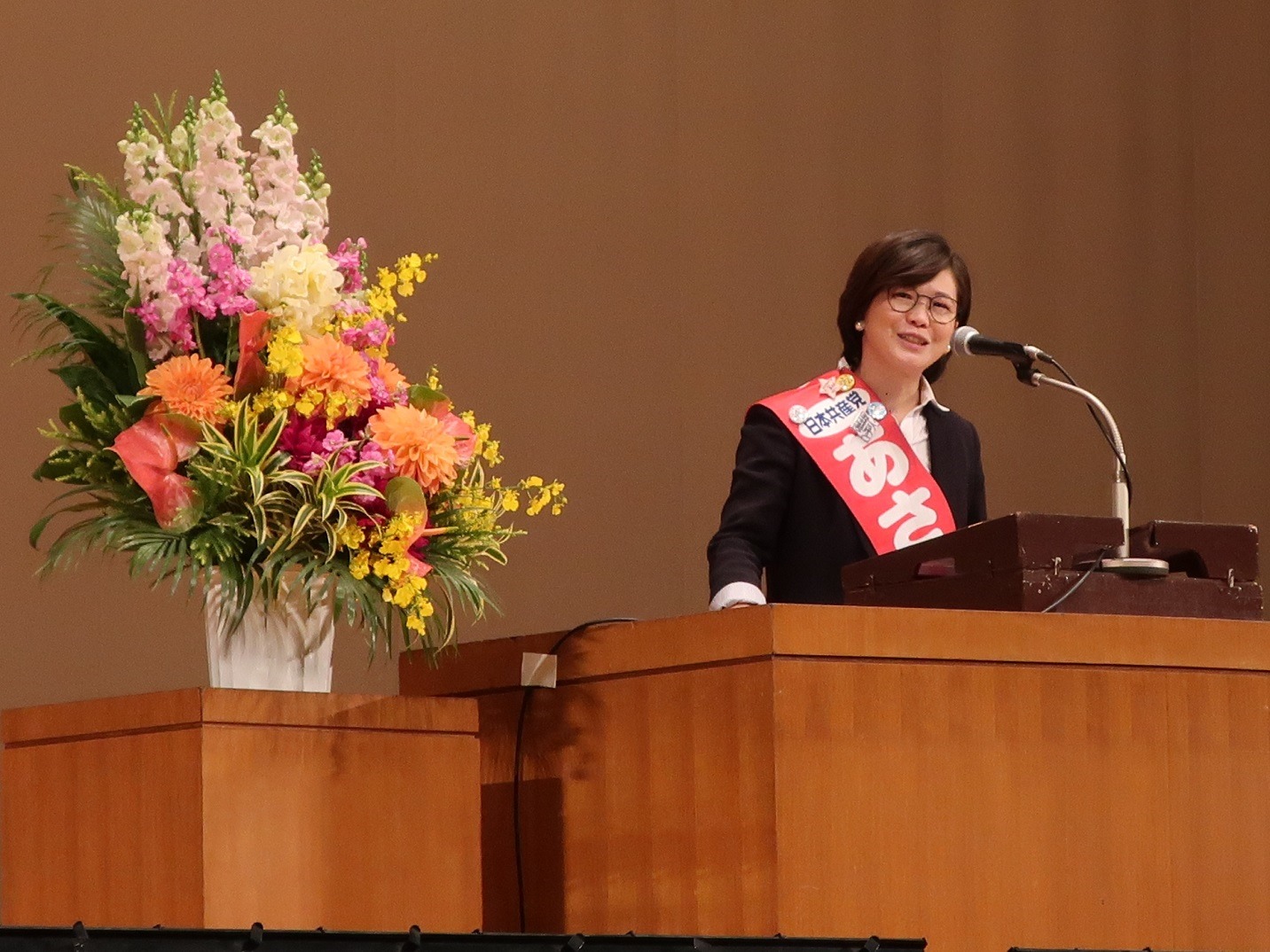 参議員予定候補のあさか由香さん、しいばかずゆきさんの力強い訴えの後、志位委員長の講演となりました。