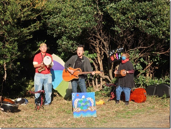 こんな原っぱですが、色んな楽器で演奏!聴きごたえ、見ごたえのある歌と演奏の「トリッパ」さん。