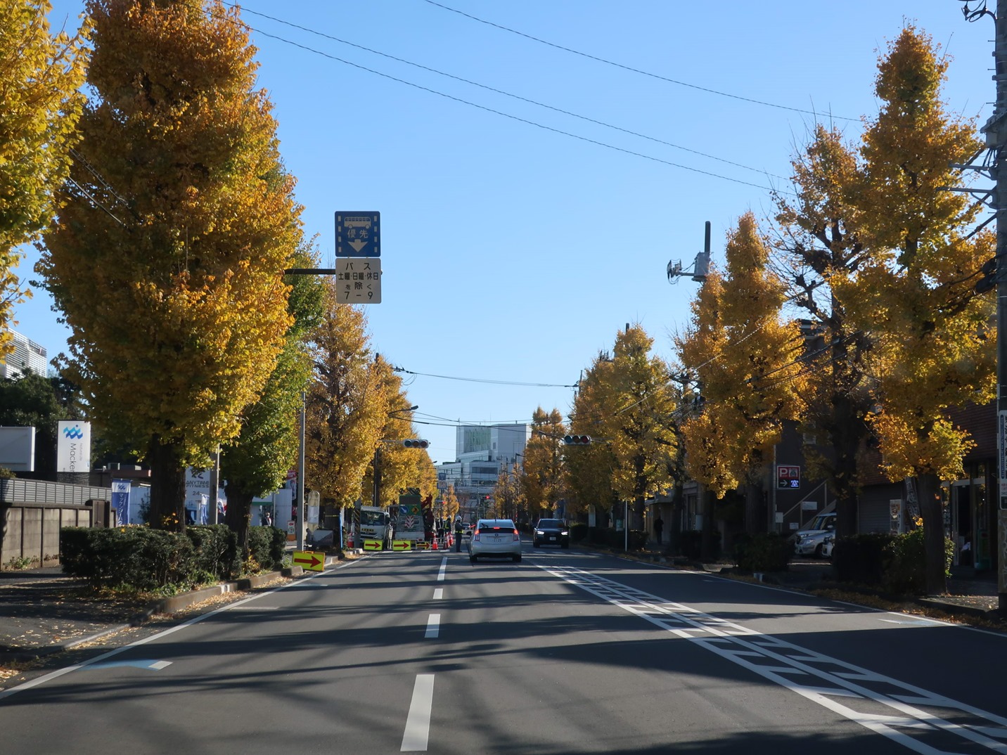 数日前に通った「横浜ゴム前」の道路。この銀杏並木もハラハラと散っています。