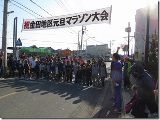 今年も元旦の9時半過ぎ、恒例の「金田地区元旦マラソン大会」が行なわれ、金田公民館前に集合しました。いつもの年より参加者も多いと聞いて嬉しくなりました。
