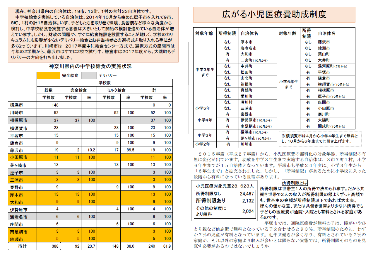 議員団ニュース1302号では、市民病院への長期貸付について、中学校給食、小児医療費助成についての状況を掲載しました。