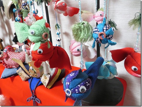 「入場無料」との張り紙に、地域の方々は自由に入って、素晴らしい「つるし雛」の数々を眺め、楽しみました。私もこの方のファンの一人であり、さっそく見せていただきました。写真の掲載もご承諾いただいたので、皆様にもその一部ではありますが、ご紹介したいと思います。