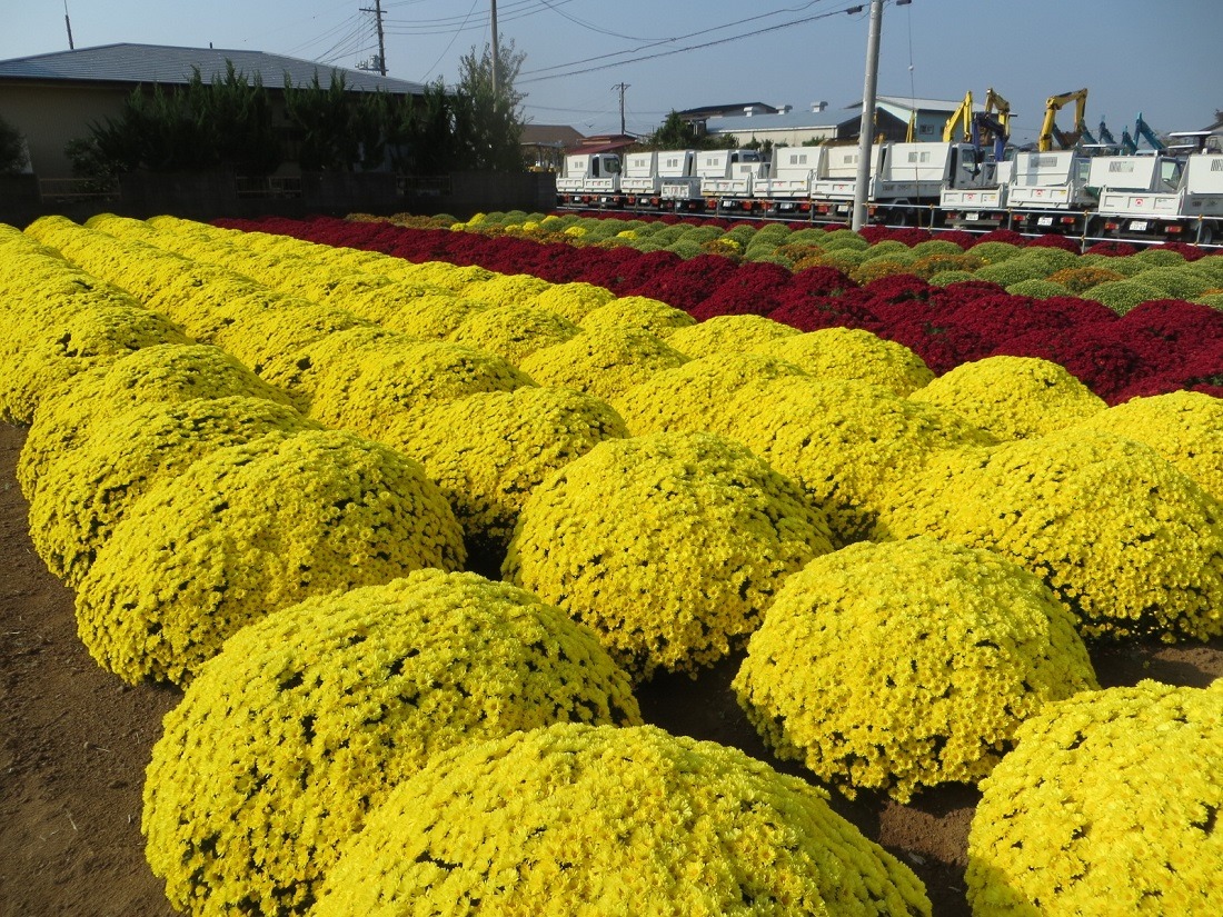 昨日、土屋に出かけたら「ざる菊園」が! 場所は、土屋小学校入口です。これからが見ごろ!!