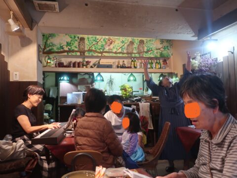 Bさんの気持ちがわかるだけに、会場を提供してくださる「開花亭さん」も、電子ピアノの町澤さんもいつものように明るく盛り上げてくださいました。選曲も秋の歌のほか、「青い山脈」や「野に咲く花のように」、「結婚しようよ」、「見上げてごらん夜の星を」などで…。