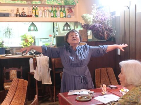 五十嵐ABさん(ご夫妻)は「うたごえ運動」の中で結ばれたお二人。うたごえ喫茶の2日前にAさんは旅立たれました。でも、BさんはAさんがこの「うたごえ喫茶 燦々」をとっても大事にしていたので、彼のためにも休めないと・・・。