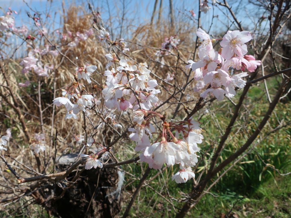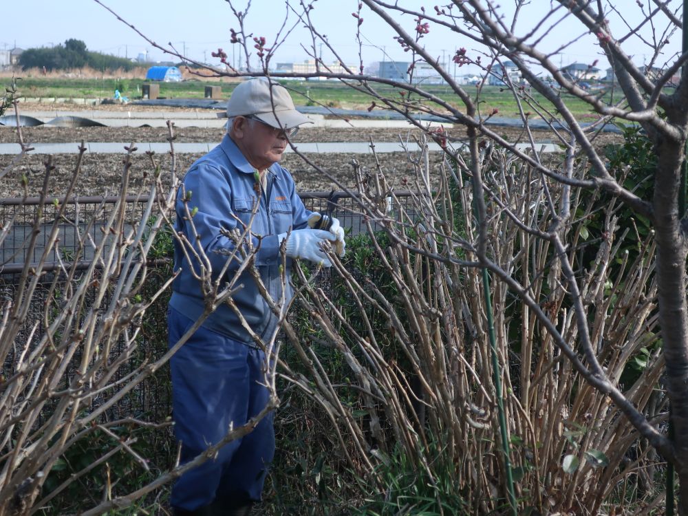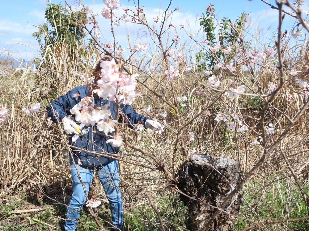 作業をする傍らでは、7~8年前に植えた「はるめき」という早咲きの桜が咲き始め、作業の手を止めて植えた当時の話にも花が咲きました。