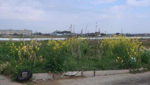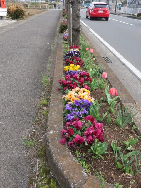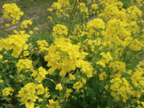 草取りはまだまだ終わりませんが、晩秋に植えたパンジーやチューリップが今、見頃です。いつも、草を置かせていただく自然農法のOさんの畑も今、菜の花が見事です。