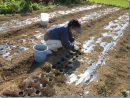 チューリップの苗の植え付けと、秋野菜。